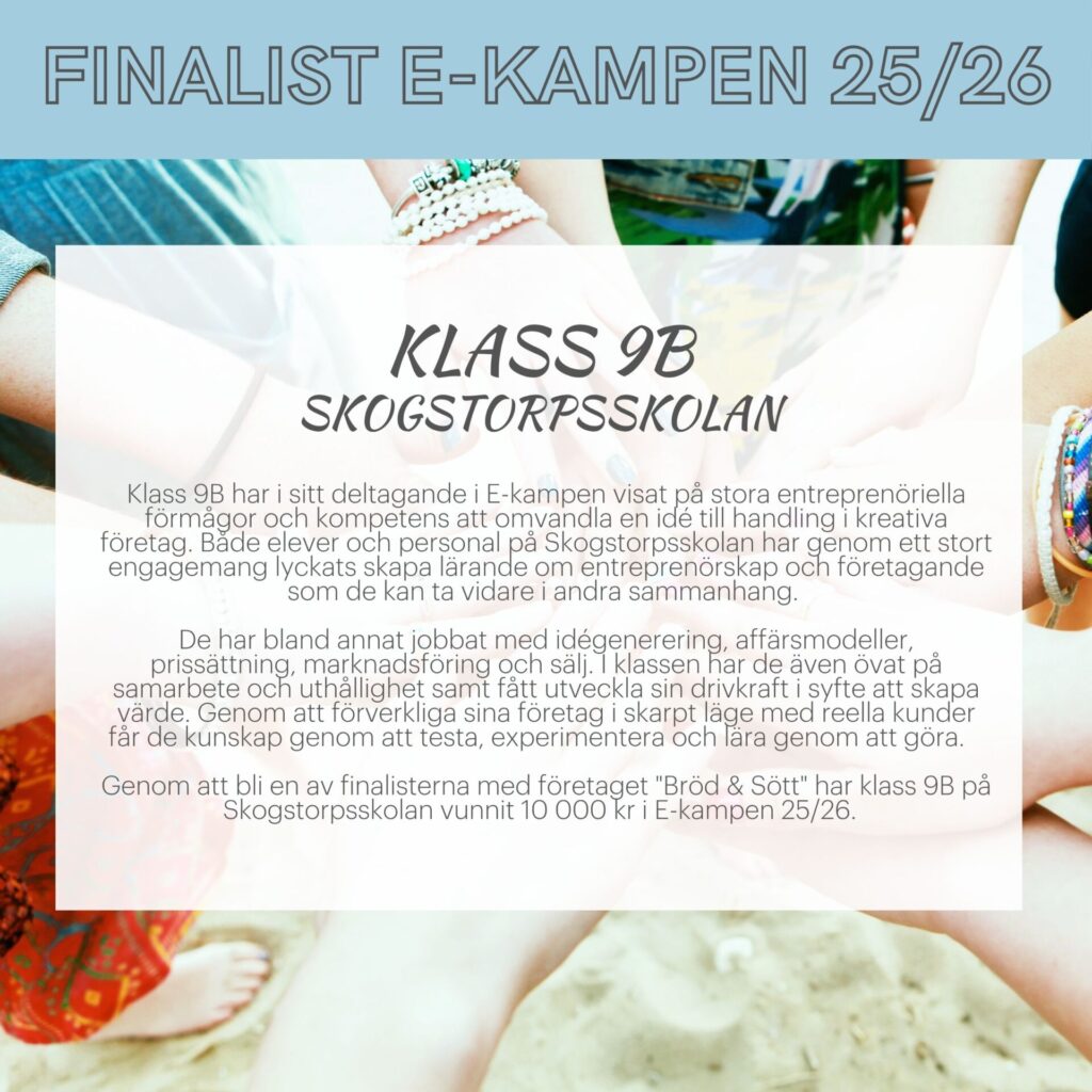 Med en stark passion för bakning och en drivande entreprenörsanda har Alma, Zelda och Selma från Skogstorpsskolan i Kumla tagit sig hela vägen till final i E-kampen 25/26. Som en av de fem finalisterna har de dessutom belönats med 10 000 kronor till klasskassan.
